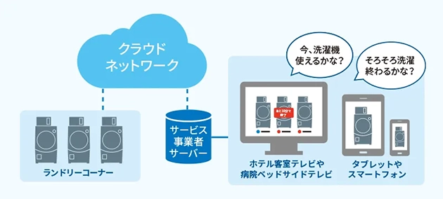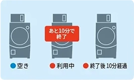 離れた場所からテレビ、タブレット、スマートフォン等の画面で、ランドリーの稼働状況が確認でき機会ロスを防ぎます。