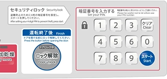 洗濯物の盗難防止に、セキュリティロック機能搭載。4桁の暗証番号入力設定でドアをロックできます。