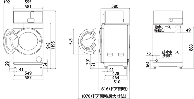 - 6.0kgまでの洗濯と、3.0kgまでの乾燥が可能です。